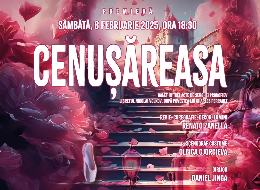 Opera Națională București prezintă în luna dedicată iubirii, pe 8 februarie, ora 18:30, premiera de balet „Cenușăreasa” de Serghei Prokofiev, o poveste despre triumful binelui, puterea dragostei adevărate și speranța care poate transforma chiar și cele mai grele încercări într-un final fericit. Regia și coregrafia poartă semnătura lui Renato Zanella. La pupitrul dirijoral se va afla maestrul Daniel Jinga. Pentru prima reprezentație cu titlu de premieră protagoniștii vor fi prim-balerinii Cristina Dijmaru și Bogdan Cănilă, cu participarea Ansamblului de Balet și a Orchestrei Operei Naționale București.