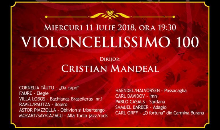 Concertul, care va fi condus de dirijorul Cristian Mandeal, reprezintă modul în care școala românească de violoncel celebrează Centenarul României, violonceliști din toată România și de toate vârstele aducând un omagiu peste timp generațiilor de iluștri profesori care i-au format din punct de vedere profesional.