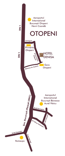 Hotelul Denisa *** este situat in apropierea Bucurestiului, in localitatea Otopeni, la 5 minute de Aeroportul International Henri Coanda.