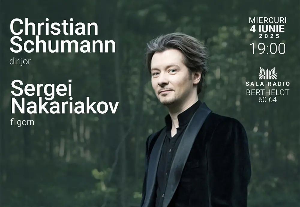Numit „Paganini al trompetei” sau „Caruso al trompetei”, Serghei Nakariakov s-a impus ca unul dintre cei mai apreciați trompetiști pe scena internațională. Artistul a răspuns invitației Radio România și avem șansa de a-l asculta astfel pentru prima oară la Sala Radio, miercuri, 4 iunie 2025 (19.00), când va interpreta Mozart – Concertul nr. 4 pentru corn și orchestră (adaptat pentru fligorn – instrument de suflat asemănător trompetei). Serghei Nakariakov va evolua alături de Orchestra de Cameră Radio și sub bagheta dirijorului Christian Schumann.