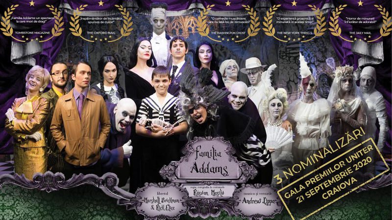 Joi, 25 mai, ora 19:00, Teatrul EXCELSIOR, Sala „Ion Lucian”: Familia Addams – spectacol de musical – regia, coregrafia și costumele Răzvan Mazilu