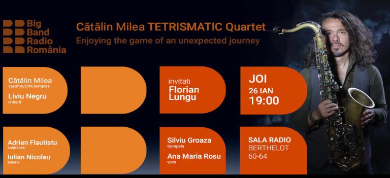 Joi, 26 ianuarie 2023, de la 19:00, Sala Radio va fi scena evenimentului „TETRISMATIC – Enjoying the Game of an Unexpected Journey”, în care saxofonistul CĂTĂLIN MILEA și invitații săi vor susține o „călătorie muzicală ca un joc”, într-o discuție cu inserturi muzicale, moderată de legendarul FLORIAN LUNGU, în jurul temei acestui album și a procesului din culisele realizării albumului „TETRISMATIC”.