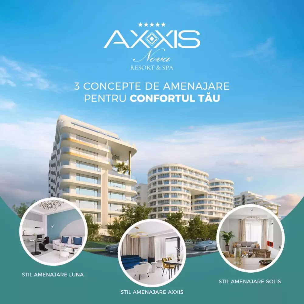 Complexul rezidențial AXXIS Nova Resort & SPA este un ansamblu exclusivist care poate oferi oricărui visător șansa de a începe o viață nouă și unică. Este un loc elegant și cu o locație privilegiată, ce oferă fiecărui viitor proprietar siguranța calității și finisaje premium, lucruri din ce în ce mai rare în ziua de astăzi.